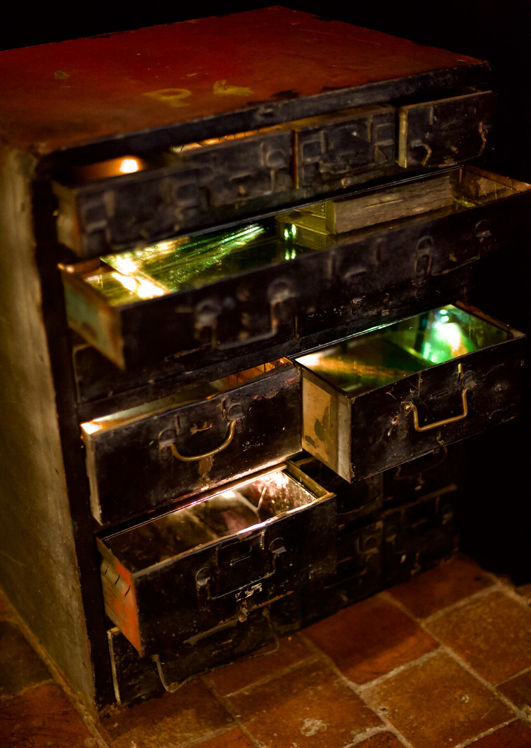 De ses tiroirs entrouverts, des films Super 8 captés par des anonymes – en Iran, en Jordanie, au Maroc, en Chine – se déploient à l’infini.